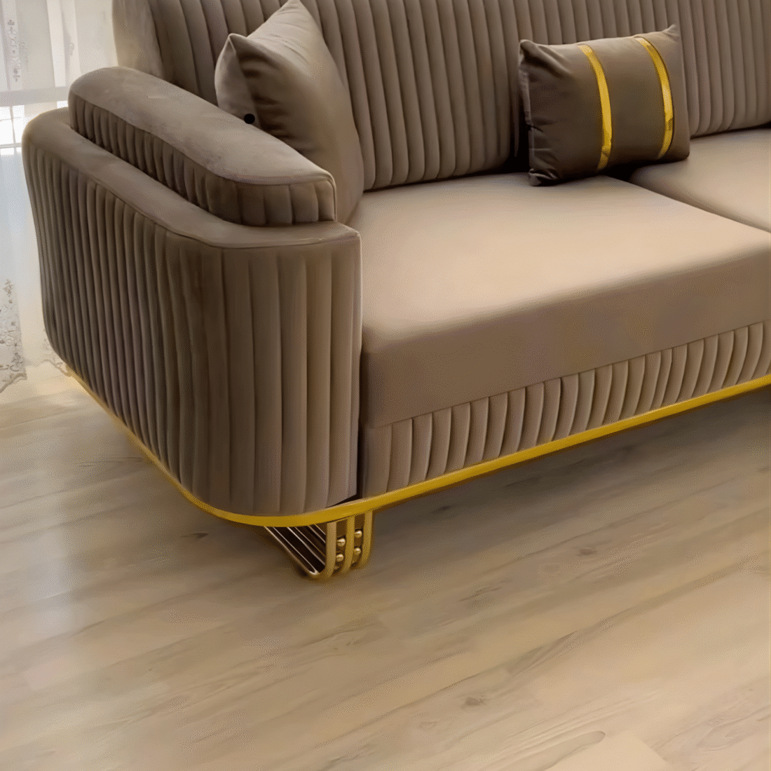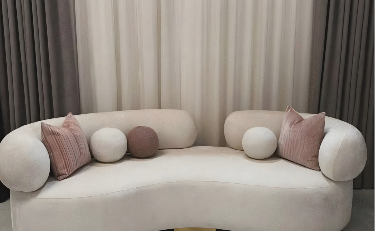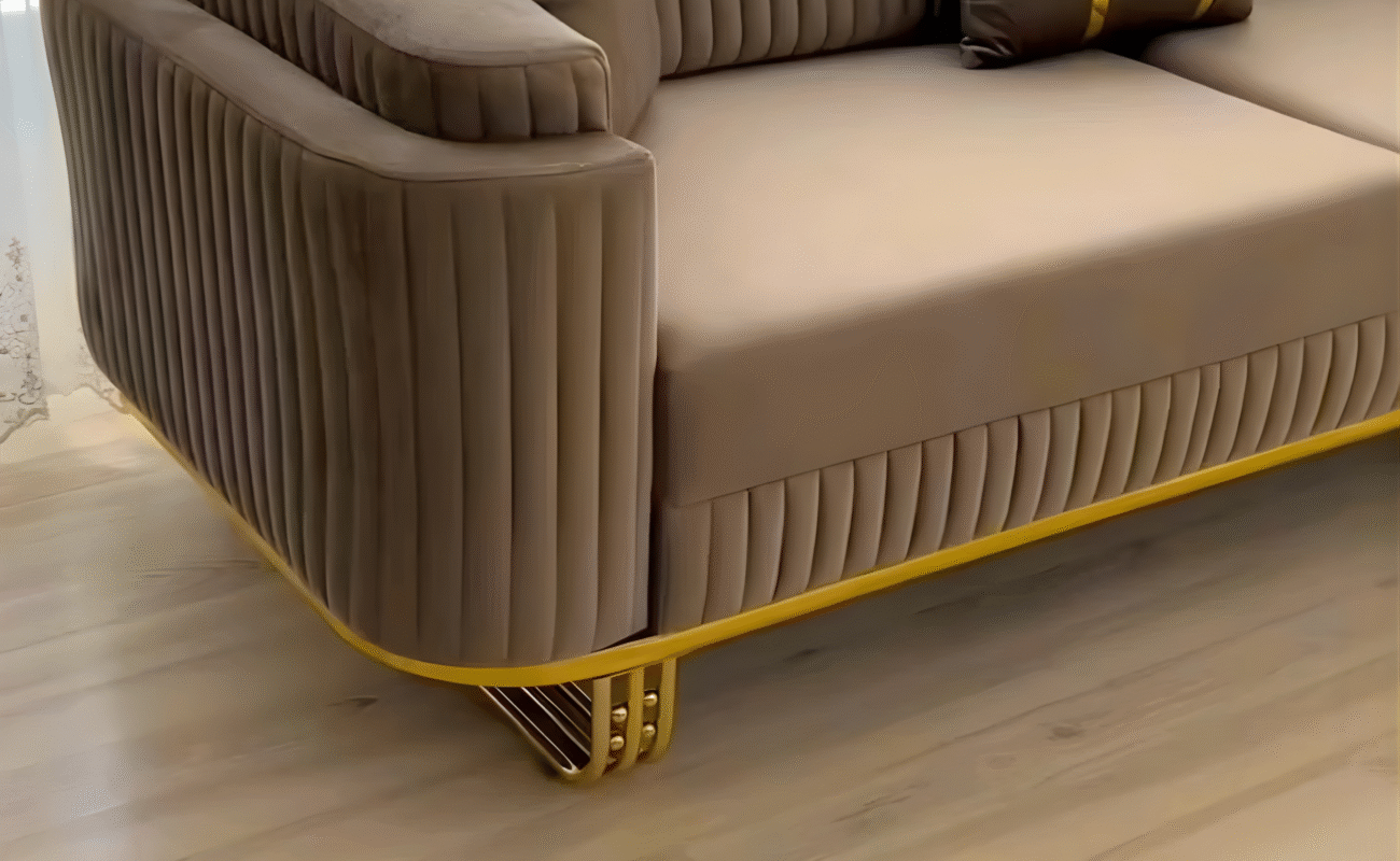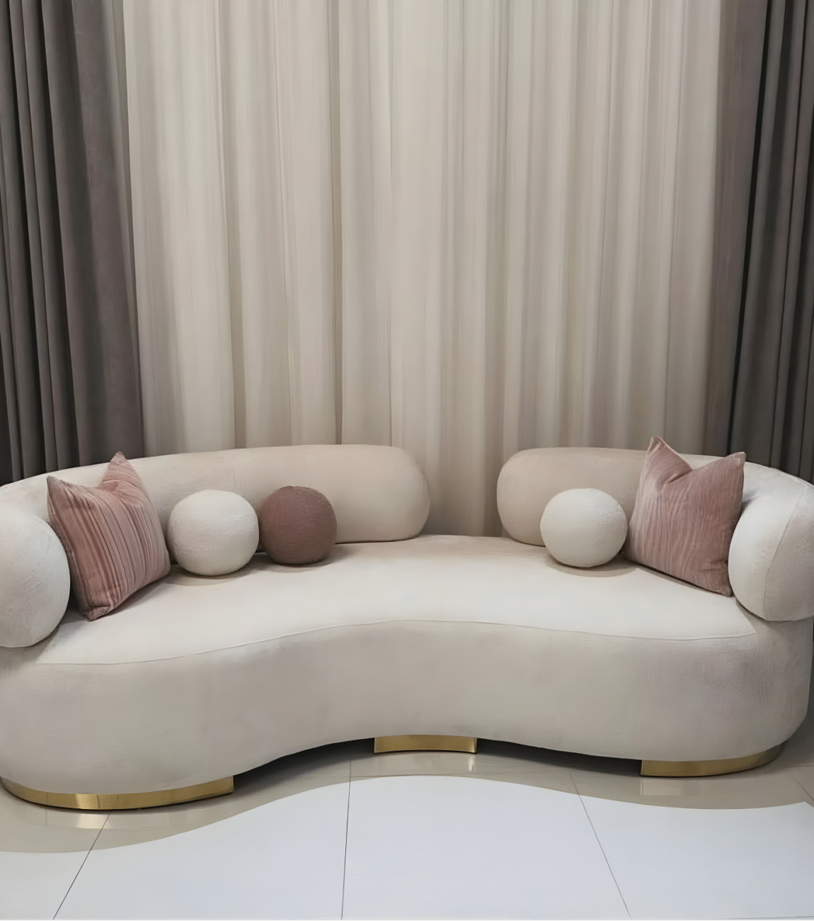 The perfect blend of comfort and elegance with our Curved Beige Sofa Chair — a masterpiece designed to bring warmth, style, and sophistication to your space. Its gracefully rounded frame, smooth texture, and refined gold accents make it the ideal statement piece for both modern and classic interiors. Whether placed in your living room, lounge, or bedroom corner, it exudes a sense of calm luxury and effortless charm.