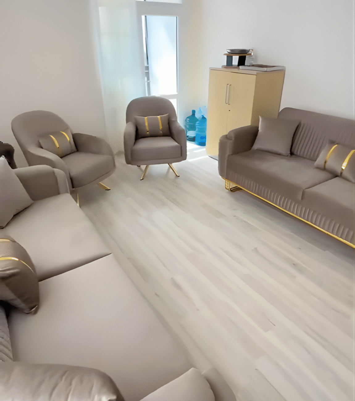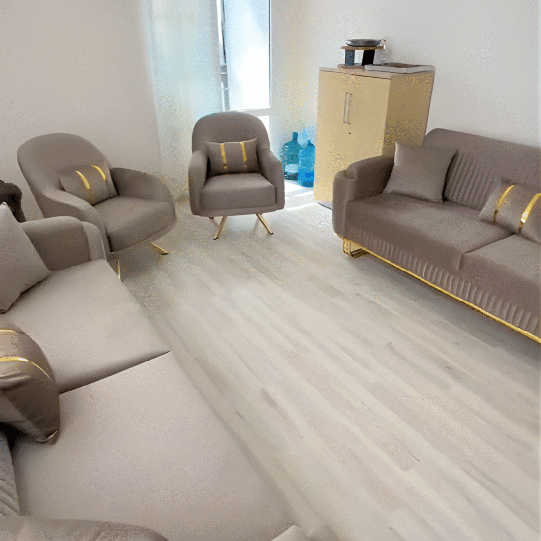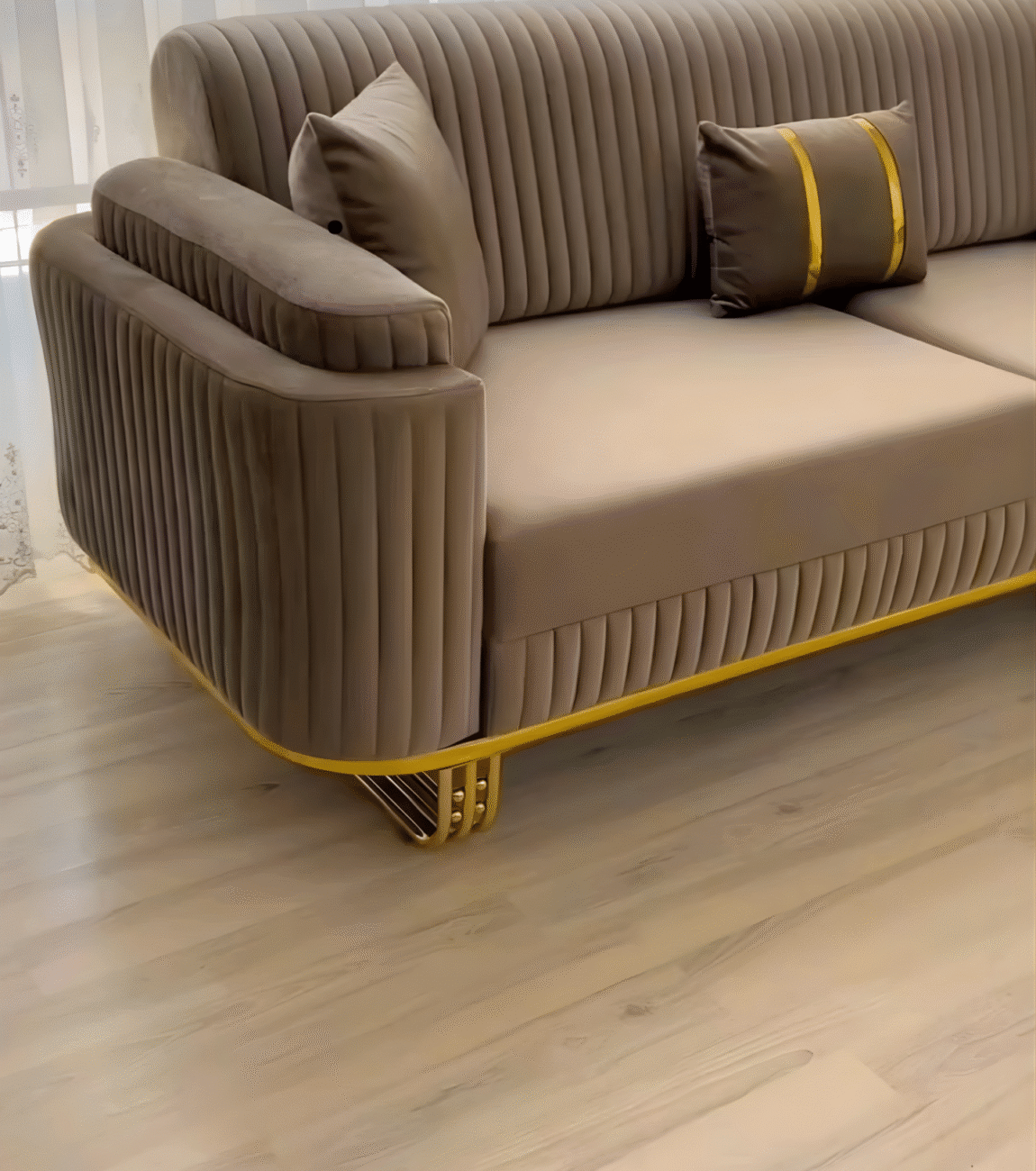 The perfect blend of comfort and elegance with our Curved Beige Sofa Chair — a masterpiece designed to bring warmth, style, and sophistication to your space. Its gracefully rounded frame, smooth texture, and refined gold accents make it the ideal statement piece for both modern and classic interiors. Whether placed in your living room, lounge, or bedroom corner, it exudes a sense of calm luxury and effortless charm.