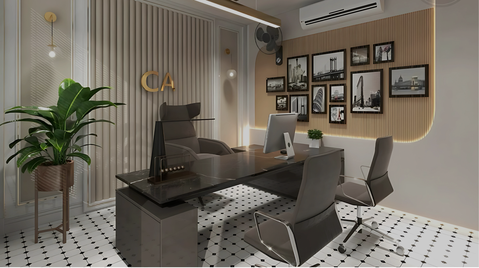 Modern Executive Office Desk and Chair Set
