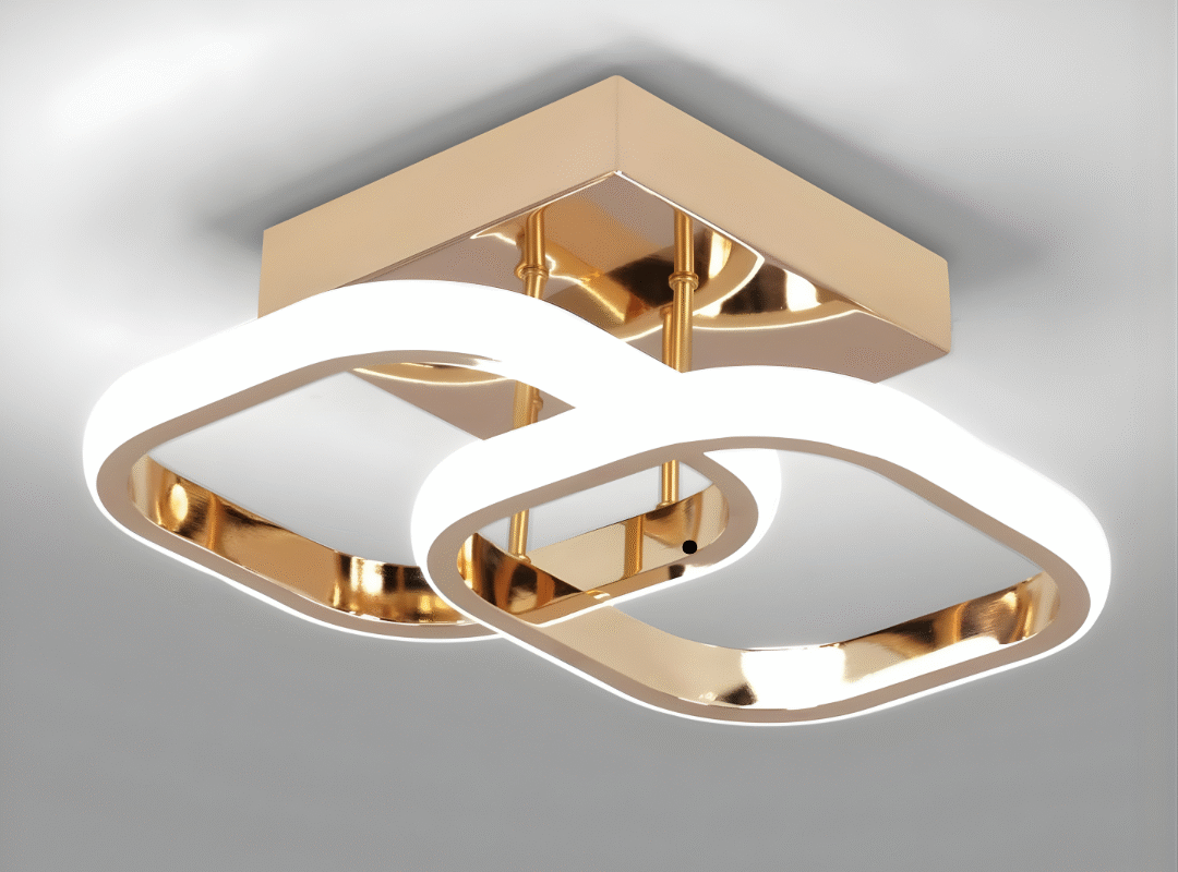 EIDISUNY Modern Square Ceiling Lamp – 22W LED, Cool White 6000K, Gold & Rose Gold