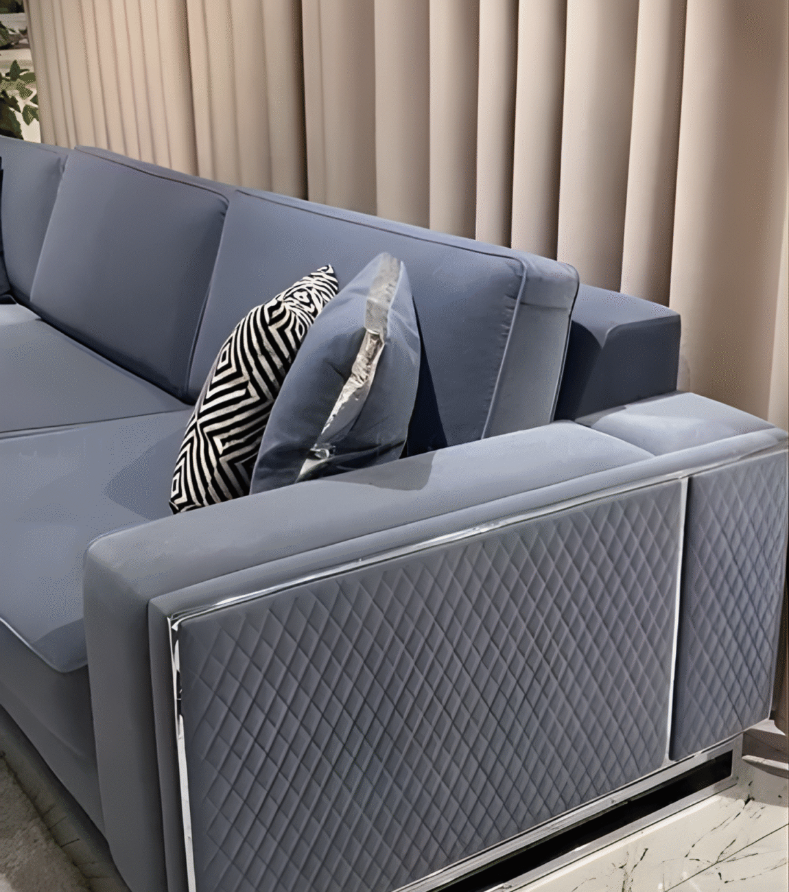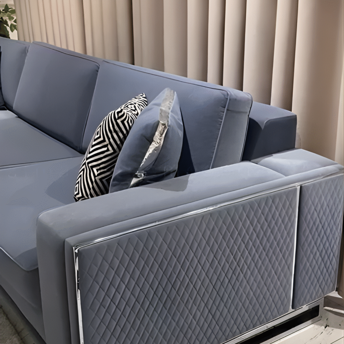 Modern Quilted Sofa Chair with Chrome Frame