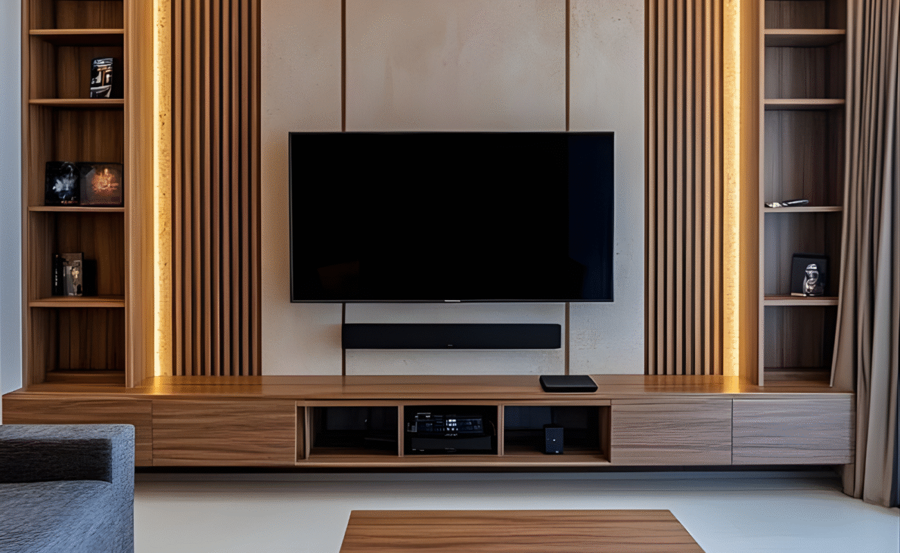 Modern Minimalist Sofa with Built-in Wooden Side Table