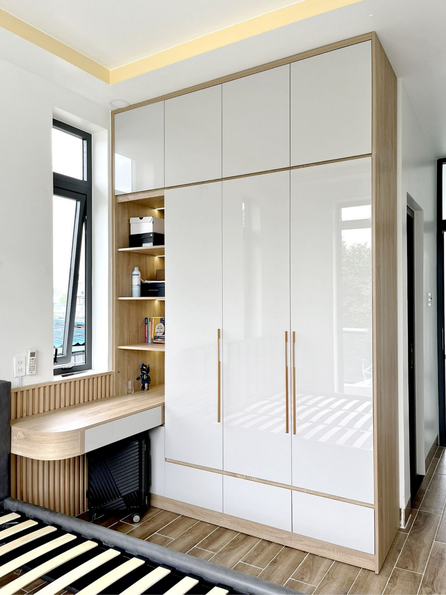 Crafted from premium materials, this wardrobe ensures long-lasting durability while maintaining a refined white finish that brightens any interior. Inside, you’ll find well-arranged hanging sections, shelves, and drawers — thoughtfully designed to keep your clothes, shoes, and accessories neatly organized.