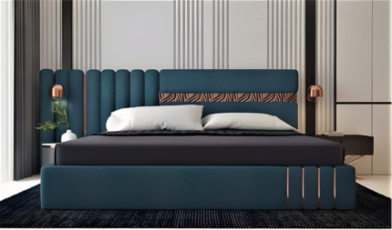 Built with a solid internal frame for durability and lasting support, this bed is as strong as it is stylish. The gold accents along the base and edges give it a refined finish that works effortlessly with marble floors, warm lighting, and minimalist décor.