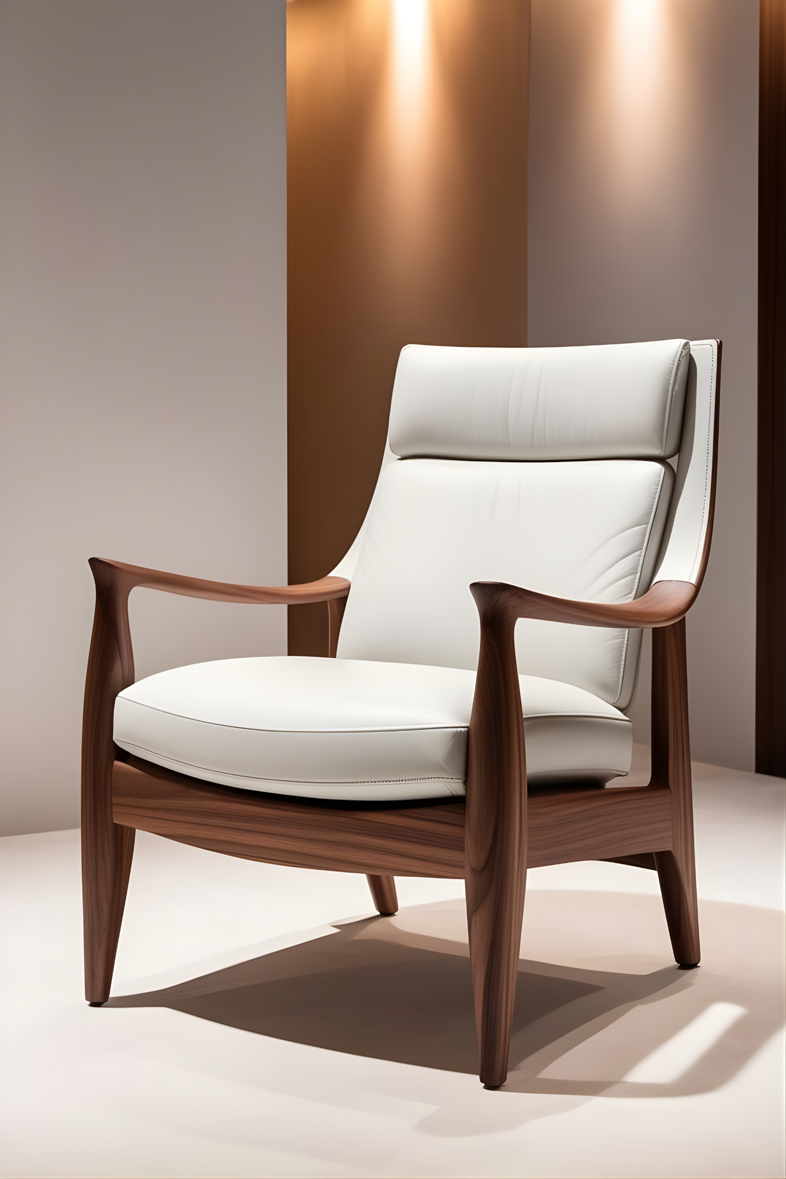 Crafted with genuine white leather upholstery and a solid walnut wood frame, this armchair captures the timeless balance between modern minimalism and natural warmth. The smooth leather texture adds a luxurious touch, while the walnut finish provides a rich, organic contrast that elevates any room.